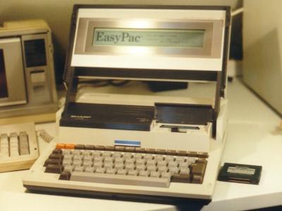This peculiar machine appears to have been dumped in the Netherlands by some 'PC Privé project', cheap pcs for employees of a company. Manuals and software are in French, the display shows hardly more than 10 lines, the space inside for a built-in printer goes unused, and let's not forget the strange memory modules, that come as ROM units loaded with software and as RAM modules. Data exchange with regular pc's is therefore only possible using the serial ports at the back of the 5000. Luckily communication software has been included, as well as a word processor and a lot more. And luckily the French manuals have also been passed on to me. They may not be very useful, but they certainly are unique.